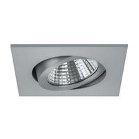 LED-Einbaustrahler, alu matt, quadratisch. Ausgeführt in kompakter Bauform für werkzeuglose Schnellmontage zum Deckeneinbau. Ausführung: Plug&Play, Montageart: Einbaumontage, Montageort: Deckenmontage, Material: Aluminium / Polycarbonat, Schutzart raumseitig: nach DIN EN 60529: IP20, Schutzklasse: (EN 61140) III, Leistung: 7W, Anzahl der Leuchtmittel / Fassungen: 1.0 Stk, Lichtstrom: 740 lm, Abstrahlwinkel: 38°, Verstellbarkeit: schwenkbar, Mit Betriebsgerät: Nein, Dimmbar: Abhängig von Betriebsgerät, Art der Dimmung: Abhängig vom Betriebsgerät.