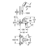 Grohe EH-Wannenbatterie Eurosmart 33302 mit Wandhalterset chrom
