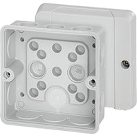 Kabelabzweigkästen aus hochwertigem Thermoplast für Aufputz-Anwendungen in Gebäuden oder die geschützte Installation im Freien. Kabeleinführung über elastische Dichtmembranen, einfach Leiter durchstecken, kein Lochwerkzeug erforderlich. Deckelbefestigung mit V2A-Schrauben. Ohne Klemmen.