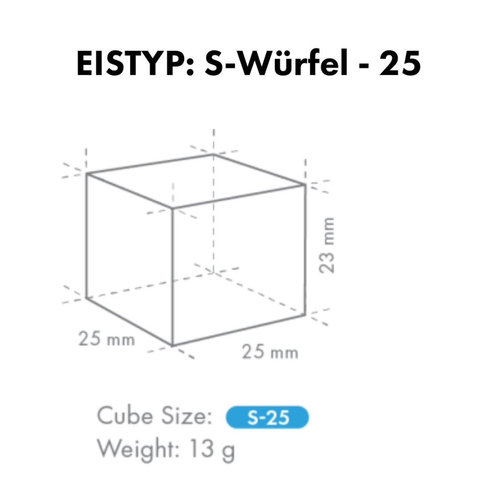 Abmessungen und Gewicht der Eiswürfel – Haftungsausschluss: Nur zur