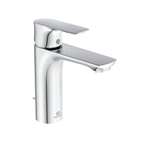 Einhebel-Waschtischarmatur Grande DN 15. Starrer Gussauslauf. Sockelmaß 48 mm. Luftsprudler mit druckunabhängigem Mengenregler 5 l/Min.. Ausladung 125 mm. Auslaufhöhe 120 mm. Flexible Anschlussschläuche G3/8. Bedienungshebel aus Metall, mit Rot-/Blau-Markierung auf dem Hebel. Befestigung von unten (EASY FIX) mit Zentrierdichtung. Durchmesser 38 mm CLICK-Kartusche mit keramischen Dichtscheiben. Kartuschenübersetzung aus Edelstahl. Kartuschenschwenkbereich 100 Grad. Getestet auf 500.000 Zyklen (ein Zyklus besteht aus insgesamt 11 verschiedenen Hebelbewegungen). Integriertes Fettreservoir (lebensmittelverträglich). Integrierter Heißwassertemperaturbegrenzer. Lebensdauertest EN 817. Geräuschverhalten DIN 4109, Gruppe 1. Farbe/ Oberfläche: Chrom Gesamte Ausladung: 165 mm Gesamte Höhe: 176 mm Hersteller: Ideal Standard Serie: Connect Air Artikel-Nr.: A7055AA