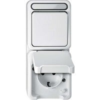 Integrierter erhöhter Berührungsschutz gemäß VDE 0620 Teil 1. Schutzkontaktsteckdose (Typ F): 16 A, AC 250 V. Kombiniert mit Wechselschalter: 10 AX, AC 250 V. Die Einsätze sind beliebig austauschbar gegen andere Geräte des AQUASTAR-Programms. Eigenschaften Schalter-Frontseitiges Nachrüsten von Beleuchtungsmodulen ohne Schalterdemontage. Frontseitige Mess- und Prüfkontakte, zugänglich ohne Schalterdemontage. Aufputz-Montage. Mit Steckklemmen. Schutzart: IP 44. Abmessungen: ca. 165x73x60 mm. Zubehör: LED-Leuchtanhänger, AC 100-230 V AQUASTAR MEG3901-8006. LED-Leuchtanhänger, AC/DC 8-32 V AQUASTAR MEG3922-8006. LED-Langfeldbeleuchtung, AC 100-230 V AQUASTAR MEG3903-8000. Schriftfeld-Einsatz AQUASTAR MEG3952-8000. Doppeleinführung AQUASTAR MEG3961-80xx Verbindungsstück AQUASTAR MEG3963-80xx Rohreinführung AQUASTAR MEG3964-8029. Kanaleinführung AQUASTAR MEG3965-80xx Schieber mit Stutzen AQUASTAR MEG3962-8029. Farbe polarweiß.